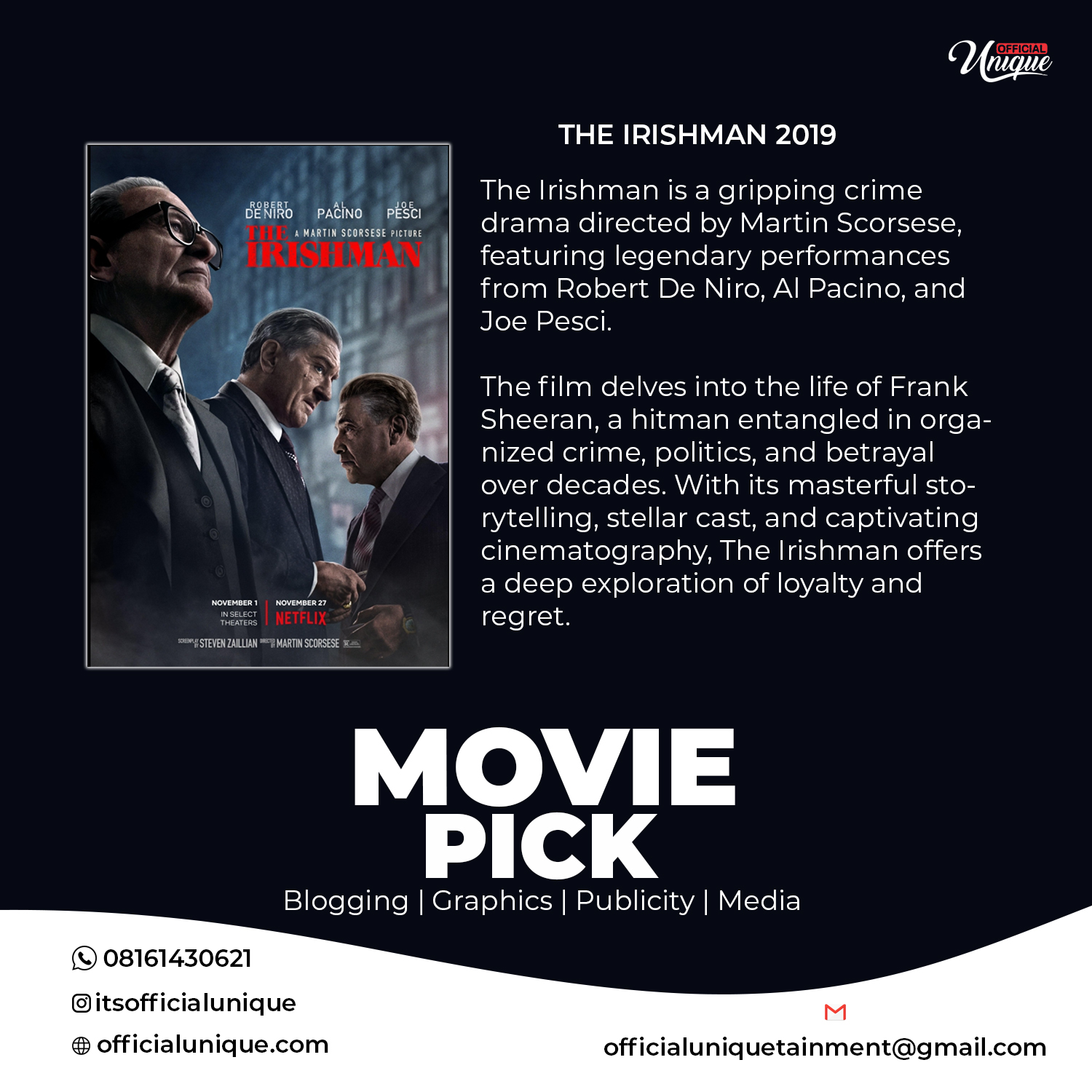 [MOVIE PICK] THE IRISHMAN 2019